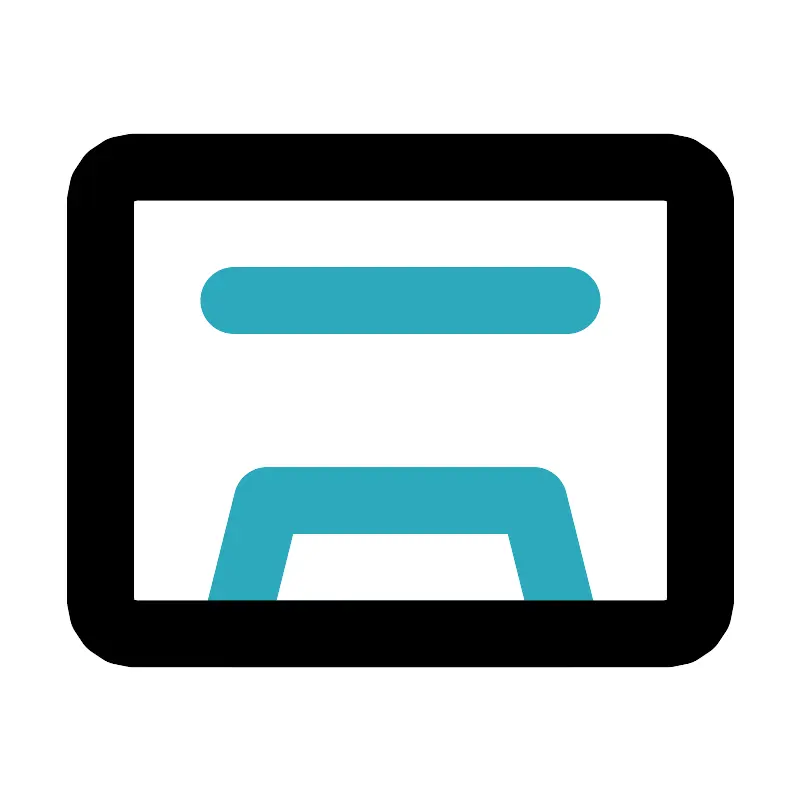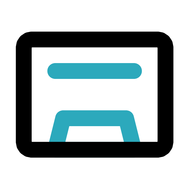 <svg fill="#000000" width="800px" height="800px" viewBox="0 0 24 24" id="cassette" data-name="Line Color" xmlns="http://www.w3.org/2000/svg" class="icon line-color"><path id="secondary" d="M16,15H8L7,19H17Zm1-6H7" style="fill: none; stroke: rgb(44, 169, 188); stroke-linecap: round; stroke-linejoin: round; stroke-width: 2;"></path><rect id="primary" x="3" y="5" width="18" height="14" rx="1" style="fill: none; stroke: rgb(0, 0, 0); stroke-linecap: round; stroke-linejoin: round; stroke-width: 2;"></rect></svg>