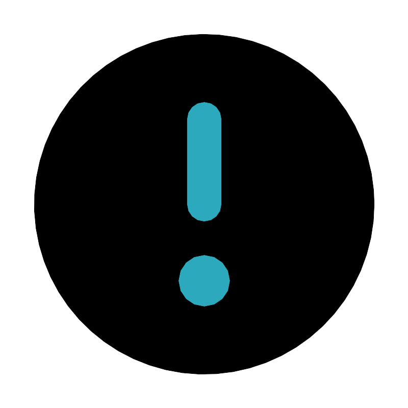 <svg fill="#000000" width="800px" height="800px" viewBox="0 0 24 24" id="caution-sign-circle" data-name="Flat Color" xmlns="http://www.w3.org/2000/svg" class="icon flat-color"><circle id="primary" cx="12" cy="12" r="10" style="fill: rgb(0, 0, 0);"></circle><path id="secondary" d="M13.5,16.5A1.5,1.5,0,1,1,12,15,1.5,1.5,0,0,1,13.5,16.5ZM13,12V7a1,1,0,0,0-2,0v5a1,1,0,0,0,2,0Z" style="fill: rgb(44, 169, 188);"></path></svg>