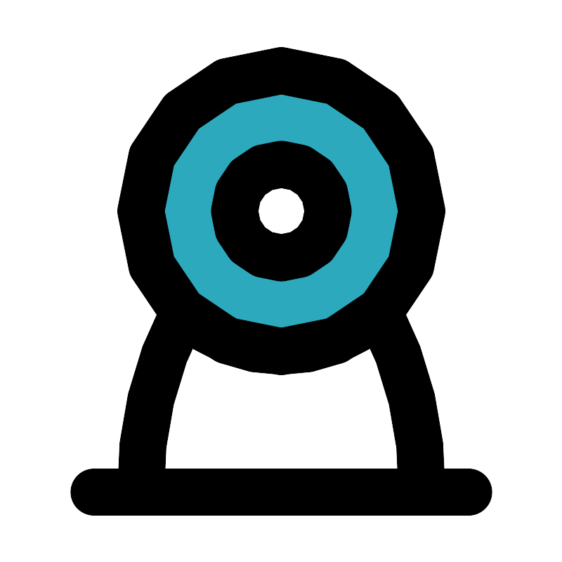 <svg fill="#000000" width="800px" height="800px" viewBox="0 0 24 24" id="cctv-camera" data-name="Flat Line" xmlns="http://www.w3.org/2000/svg" class="icon flat-line"><path id="secondary" d="M12,3a6,6,0,1,0,6,6A6,6,0,0,0,12,3Zm0,8a2,2,0,1,1,2-2A2,2,0,0,1,12,11Z" style="fill: rgb(44, 169, 188); stroke-width: 2;"></path><path id="primary" d="M16.17,13.3A15.92,15.92,0,0,1,18,21H6a15.92,15.92,0,0,1,1.83-7.7,6,6,0,0,0,8.34,0Z" style="fill: none; stroke: rgb(0, 0, 0); stroke-linecap: round; stroke-linejoin: round; stroke-width: 2;"></path><path id="primary-2" data-name="primary" d="M12,15a6,6,0,1,1,6-6A6,6,0,0,1,12,15Zm0-8a2,2,0,1,0,2,2A2,2,0,0,0,12,7ZM4,21H20" style="fill: none; stroke: rgb(0, 0, 0); stroke-linecap: round; stroke-linejoin: round; stroke-width: 2;"></path></svg>