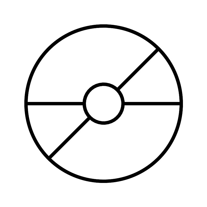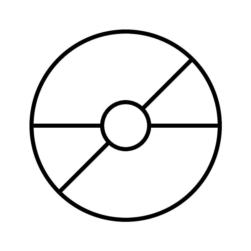 <svg width="800px" height="800px" viewBox="0 0 64 64" xmlns="http://www.w3.org/2000/svg" fill="none" stroke="#000000"><circle cx="32" cy="32" r="24"/><circle cx="32" cy="32" r="6"/><line x1="38" y1="32" x2="56" y2="32"/><line x1="8" y1="32" x2="26.01" y2="32"/><line x1="48.97" y1="15.03" x2="36.21" y2="27.79"/><line x1="27.76" y1="36.24" x2="15.03" y2="48.97"/></svg>