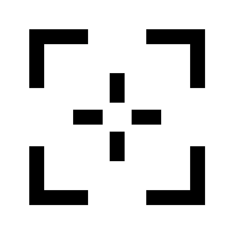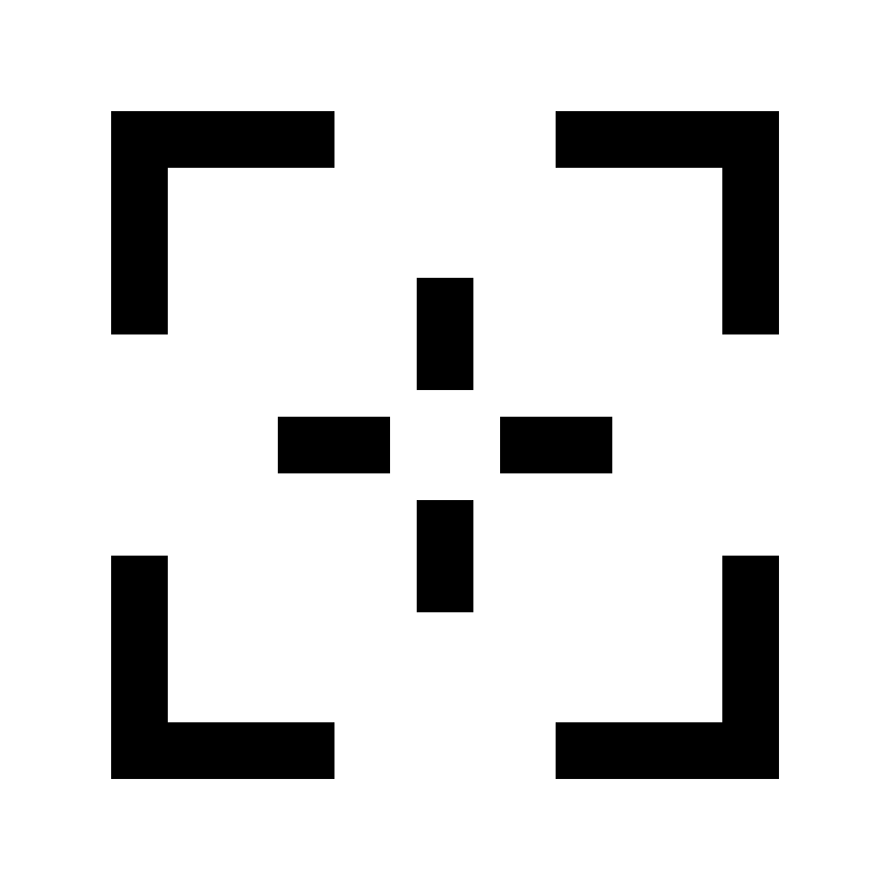 <svg fill="#000000" width="800px" height="800px" viewBox="0 0 32 32" id="icon" xmlns="http://www.w3.org/2000/svg"><defs><style>.cls-1{fill:none;}</style></defs><title>center--square</title><polygon points="6 12 4 12 4 4 12 4 12 6 6 6 6 12"/><polygon points="28 12 26 12 26 6 20 6 20 4 28 4 28 12"/><polygon points="12 28 4 28 4 20 6 20 6 26 12 26 12 28"/><polygon points="28 28 20 28 20 26 26 26 26 20 28 20 28 28"/><rect x="15" y="10" width="2" height="4"/><rect x="10" y="15" width="4" height="2"/><rect x="18" y="15" width="4" height="2"/><rect x="15" y="18" width="2" height="4"/><rect id="_Transparent_Rectangle_" data-name="<Transparent Rectangle>" class="cls-1" width="32" height="32"/></svg>