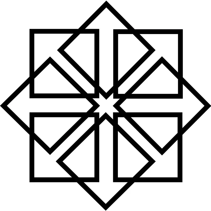 <path d="M16.099 0.089l-4.255 4.286h-7.38v7.245l-4.464 4.396 4.464 4.396v7.188h7.167l4.38 4.313 4.38-4.313h7.24v-7.167l4.37-4.396-4.307-4.339v-7.271h-7.281zM16.099 1.089l3.323 3.339h-2.255v8.589l-1.068 1.073-1.078-1.083v-8.63h-2.182zM5.167 5.073h5.979l-2.5 2.516 5.672 5.708v0.87h-1.063l-5.688-5.604-2.401 2.359zM12.135 5.073h2.182v7.224l-4.677-4.708zM17.875 5.13h2.25l2.438 2.458-4.688 4.719zM21.115 5.13h5.87v5.859l-2.438-2.453-5.656 5.688h-1.016v-0.922l5.677-5.714zM24.547 9.531l2.438 2.458v2.234h-7.099zM7.568 9.547l4.688 4.62h-7.089v-2.255zM4.464 12.604v2.266h8.505l1.161 1.141-1.047 1.026h-8.615v2.385l-3.464-3.406zM27.693 12.698l3.318 3.333-3.38 3.401v-2.396h-8.547l-1-1.005 1.099-1.104h8.51zM15.021 14l1.078 1.089 0.25-0.25 0.818-0.828v0.917h1.026l-1.099 1.104 1 1.005h-0.958v1.078l-1.125-1.104-0.99 0.974v-0.943h-0.932l1.042-1.026-0.25-0.25-0.911-0.896h1.052zM5.167 17.745h7.203l-4.802 4.729-2.396-2.359zM13.375 17.745h0.943v0.932l-5.87 5.781 2.469 2.432h-5.75v-5.786l2.401 2.359zM17.839 17.745h0.953l5.755 5.786 0.25-0.245 2.13-2.151v5.755h-5.823l2.474-2.432-0.255-0.245-5.484-5.406zM19.786 17.745h7.141v2.396l-2.38 2.396zM16.010 17.995l1.125 1.109v8.49h2.25l-3.375 3.328-3.375-3.328h2.385v-8.62zM14.318 19.667v7.224h-2.401l-2.469-2.427zM17.839 19.797l4.734 4.661-2.469 2.438h-2.266z"/>