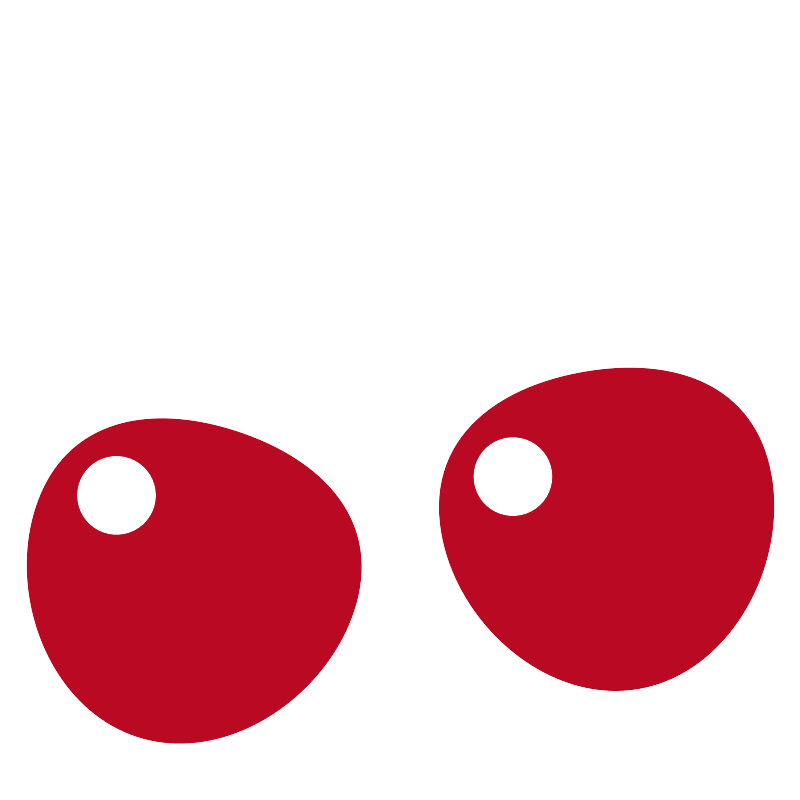 <svg width="800px" height="800px" viewBox="0 0 150 150" id="ART" xmlns="http://www.w3.org/2000/svg"><defs><style>.cls-1{fill:none;}.cls-1,.cls-2{stroke:#000000;stroke-miterlimit:10;stroke-width:4px;}.cls-2{fill:#ba0923;}.cls-3{fill:#ffffff;}</style></defs><title/><path class="cls-1" d="M36.79,89.58C53.8,68.2,74,35.1,75.17,14c26.67,32.18,36.35,57.25,39.32,77.93"/><path class="cls-2" d="M66.26,114.39c-5.38,16.45-24.23,29-40.69,23.6s-24.27-26.6-18.89-43,21.15-19.54,37.6-14.16S71.64,97.94,66.26,114.39Z"/><path class="cls-2" d="M144.5,89c3,17-7.72,37-24.77,40s-34-12-37-29.08,9.45-27.19,26.49-30.2S141.49,71.94,144.5,89Z"/><circle class="cls-3" cx="21.75" cy="92.79" r="7.32"/><circle class="cls-3" cx="96.08" cy="89.27" r="7.32"/></svg>
