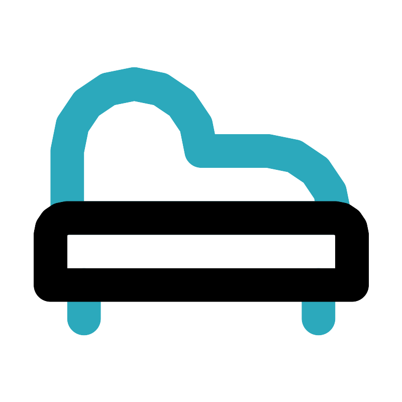 <svg fill="#000000" width="800px" height="800px" viewBox="0 0 24 24" id="chaise-longue-3" data-name="Line Color" xmlns="http://www.w3.org/2000/svg" class="icon line-color"><path id="secondary" d="M16,9a4,4,0,0,1,4,4H4V9A4,4,0,0,1,8,5H8a4,4,0,0,1,4,4h4ZM5,17v2m14-2v2" style="fill: none; stroke: rgb(44, 169, 188); stroke-linecap: round; stroke-linejoin: round; stroke-width: 2;"></path><path id="primary" d="M11,6h3a0,0,0,0,1,0,0V24a0,0,0,0,1,0,0H11a1,1,0,0,1-1-1V7A1,1,0,0,1,11,6Z" transform="translate(27 3) rotate(90)" style="fill: none; stroke: rgb(0, 0, 0); stroke-linecap: round; stroke-linejoin: round; stroke-width: 2;"></path></svg>