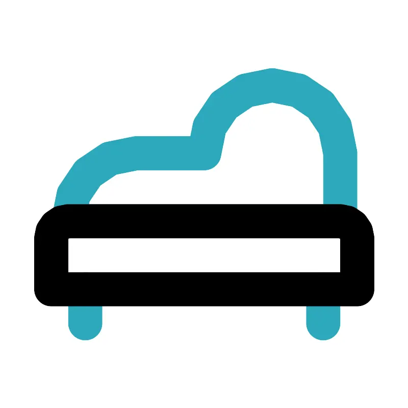 <svg fill="#000000" width="800px" height="800px" viewBox="0 0 24 24" id="chaise-longue-4" data-name="Line Color" xmlns="http://www.w3.org/2000/svg" class="icon line-color"><path id="secondary" d="M12,9h0a4,4,0,0,1,4-4h0a4,4,0,0,1,4,4v4H4A4,4,0,0,1,8,9Zm7,10V17M5,19V17" style="fill: none; stroke: rgb(44, 169, 188); stroke-linecap: round; stroke-linejoin: round; stroke-width: 2;"></path><path id="primary" d="M3,13H21a0,0,0,0,1,0,0v3a1,1,0,0,1-1,1H4a1,1,0,0,1-1-1V13A0,0,0,0,1,3,13Z" transform="translate(24 30) rotate(180)" style="fill: none; stroke: rgb(0, 0, 0); stroke-linecap: round; stroke-linejoin: round; stroke-width: 2;"></path></svg>