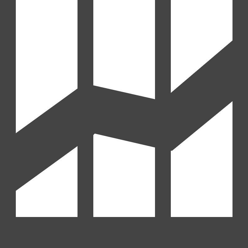 <path fill="#444" d="M0 16h16v-16h-1v2.6l-4 3.4v-6h-1v6.4l-4-0.9v-5.5h-1v5.7l-4 2.9v-8.6h-1zM5 14h-4v-1.7l4-2.9v4.6zM10 14h-4v-5.3l0.1-0.1 3.9 0.9v4.5zM15 14h-4v-4.3h0.1l3.9-3.2v7.5z"></path>