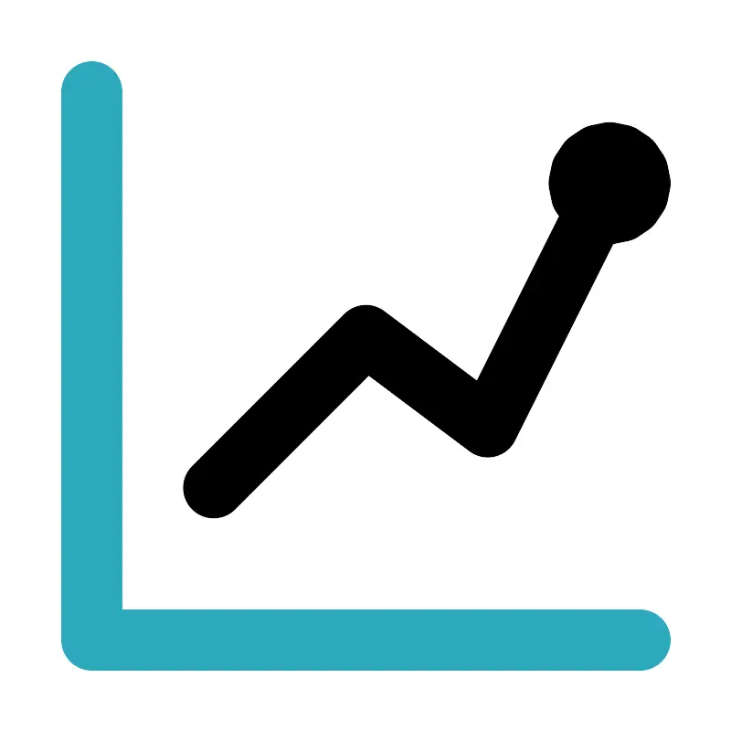 <svg fill="#000000" width="800px" height="800px" viewBox="0 0 24 24" id="chart-line-alt-1" xmlns="http://www.w3.org/2000/svg" class="icon multi-color"><title style="stroke-width: 2;">chart line alt 1</title><polyline id="secondary-stroke" points="3 3 3 21 21 21" style="fill: none; stroke: rgb(44, 169, 188); stroke-linecap: round; stroke-linejoin: round; stroke-width: 2;"></polyline><path id="primary-stroke" d="M20,6l-4,8-4-3L7,16M20,5a1,1,0,1,0,1,1A1,1,0,0,0,20,5Z" style="fill: none; stroke: rgb(0, 0, 0); stroke-linecap: round; stroke-linejoin: round; stroke-width: 2;"></path></svg>