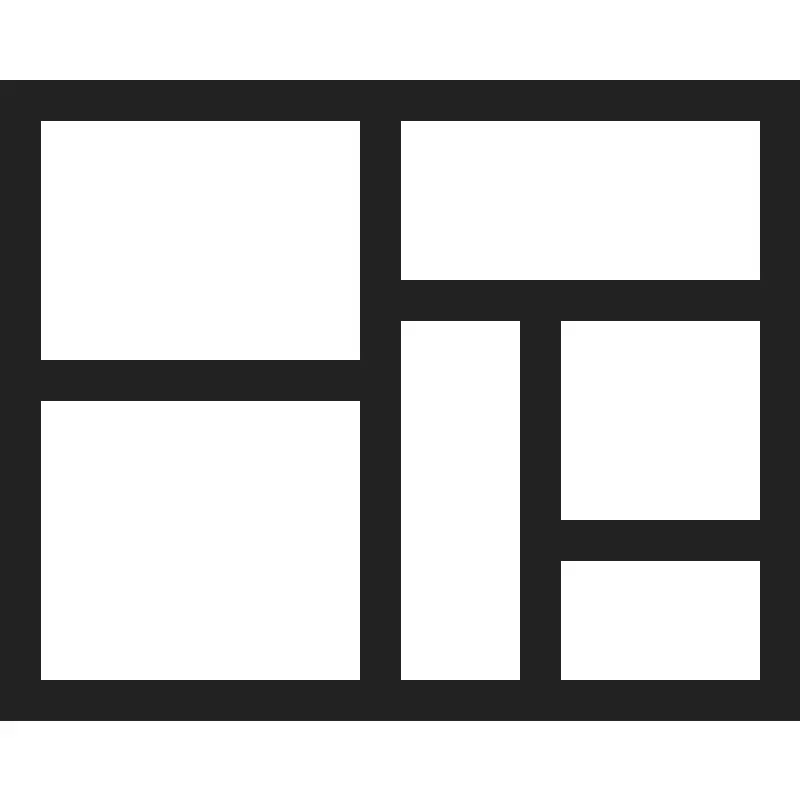<path d="M 0,2 V 18 H 20 V 2 Z M 1,3 H 9 V 9 H 1 Z m 9,0 h 9 v 4 h -9 z m 0,5 h 3 v 9 h -3 z m 4,0 h 5 v 5 H 14 Z M 1,10 h 8 v 7 H 1 Z m 13,4 h 5 v 3 h -5 z" style="fill:#222222;fill-opacity:1;stroke:none;stroke-width:0px;"/>