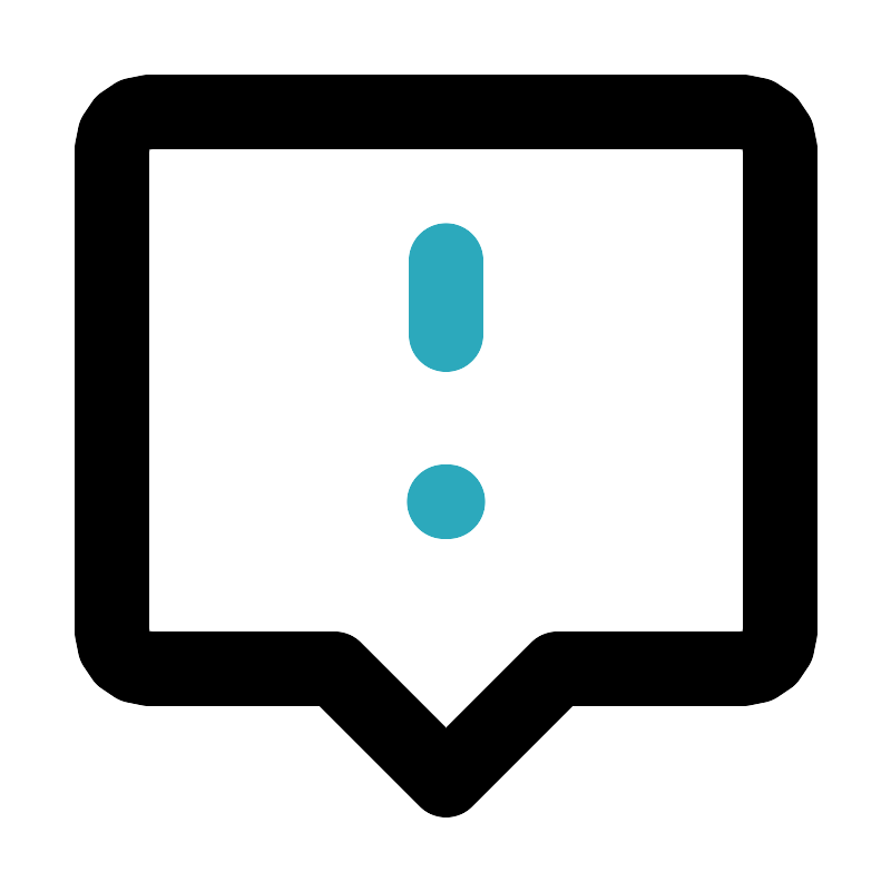 <svg fill="#000000" width="800px" height="800px" viewBox="0 0 24 24" id="chat-alert-2" data-name="Line Color" xmlns="http://www.w3.org/2000/svg" class="icon line-color"><line id="secondary-upstroke" x1="12.05" y1="13.5" x2="11.95" y2="13.5" style="fill: none; stroke-linecap: round; stroke-linejoin: round; stroke-width: 2; stroke: rgb(44, 169, 188);"></line><line id="secondary" x1="12" y1="9" x2="12" y2="7" style="fill: none; stroke-linecap: round; stroke-linejoin: round; stroke-width: 2; stroke: rgb(44, 169, 188);"></line><path id="primary" d="M20,3H4A1,1,0,0,0,3,4V17a1,1,0,0,0,1,1H9l3,3,3-3h5a1,1,0,0,0,1-1V4A1,1,0,0,0,20,3Z" style="fill: none; stroke: rgb(0, 0, 0); stroke-linecap: round; stroke-linejoin: round; stroke-width: 2;"></path></svg>