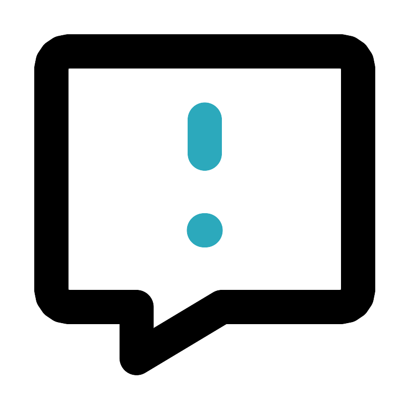 <svg fill="#000000" width="800px" height="800px" viewBox="0 0 24 24" id="chat-alert-left-3" data-name="Line Color" xmlns="http://www.w3.org/2000/svg" class="icon line-color"><line id="secondary-upstroke" x1="12.05" y1="13.5" x2="11.95" y2="13.5" style="fill: none; stroke-linecap: round; stroke-linejoin: round; stroke-width: 2; stroke: rgb(44, 169, 188);"></line><line id="secondary" x1="12" y1="9" x2="12" y2="7" style="fill: none; stroke-linecap: round; stroke-linejoin: round; stroke-width: 2; stroke: rgb(44, 169, 188);"></line><path id="primary" d="M20,3H4A1,1,0,0,0,3,4V17a1,1,0,0,0,1,1H8v3l5-3h7a1,1,0,0,0,1-1V4A1,1,0,0,0,20,3Z" style="fill: none; stroke: rgb(0, 0, 0); stroke-linecap: round; stroke-linejoin: round; stroke-width: 2;"></path></svg>