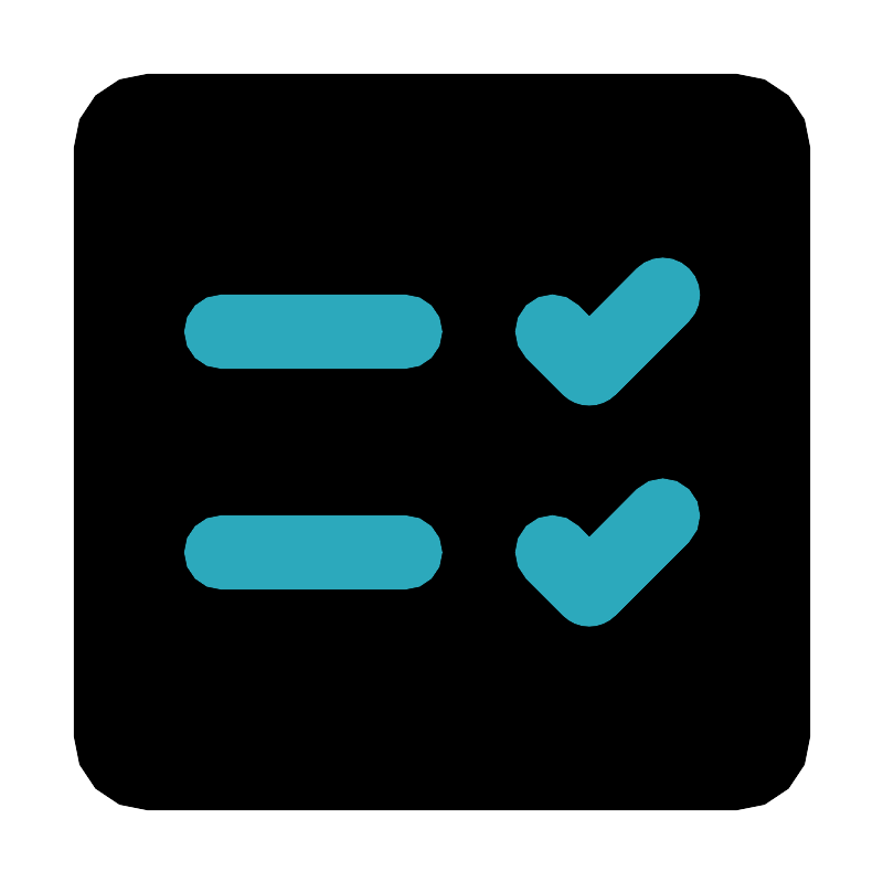 <svg fill="#000000" width="800px" height="800px" viewBox="0 0 24 24" id="check-lists-square-2" data-name="Flat Color" xmlns="http://www.w3.org/2000/svg" class="icon flat-color"><rect id="primary" x="2" y="2" width="20" height="20" rx="2" style="fill: rgb(0, 0, 0);"></rect><path id="secondary" d="M16,11a1,1,0,0,1-.71-.29l-1-1a1,1,0,0,1,1.42-1.42l.29.3,1.29-1.3a1,1,0,1,1,1.42,1.42l-2,2A1,1,0,0,1,16,11Zm.71,5.71,2-2a1,1,0,0,0-1.42-1.42L16,14.59l-.29-.3a1,1,0,0,0-1.42,1.42l1,1a1,1,0,0,0,1.42,0ZM6,16h5a1,1,0,0,0,0-2H6a1,1,0,0,0,0,2Zm0-6h5a1,1,0,0,0,0-2H6a1,1,0,0,0,0,2Z" style="fill: rgb(44, 169, 188);"></path></svg>
