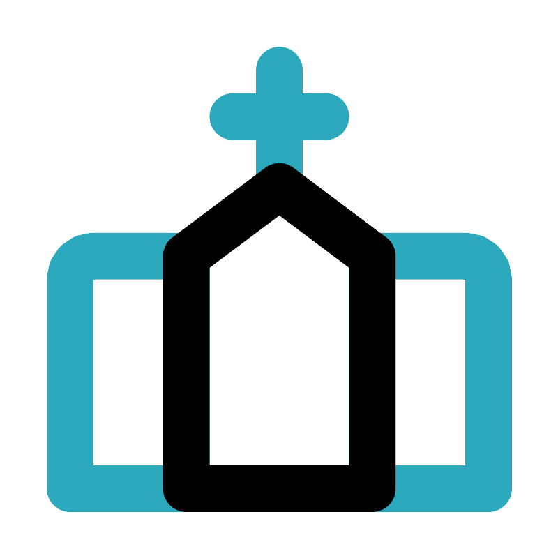 <svg fill="#000000" width="800px" height="800px" viewBox="0 0 24 24" id="church" data-name="Line Color" xmlns="http://www.w3.org/2000/svg" class="icon line-color"><path id="secondary" d="M21,21H16V11h4a1,1,0,0,1,1,1ZM3,21H8V11H4a1,1,0,0,0-1,1ZM12,3V8M10,5h4" style="fill: none; stroke: rgb(44, 169, 188); stroke-linecap: round; stroke-linejoin: round; stroke-width: 2;"></path><polygon id="primary" points="16 21 16 11 12 8 8 11 8 21 16 21" style="fill: none; stroke: rgb(0, 0, 0); stroke-linecap: round; stroke-linejoin: round; stroke-width: 2;"></polygon></svg>