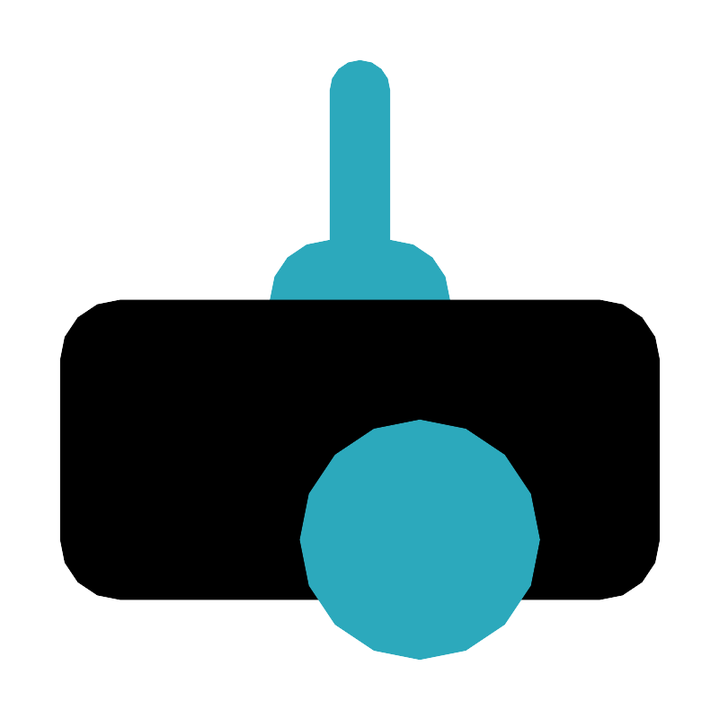 <svg fill="#000000" width="800px" height="800px" viewBox="0 0 24 24" id="cinema-projector" data-name="Flat Color" xmlns="http://www.w3.org/2000/svg" class="icon flat-color"><path id="secondary" d="M13,8V3a1,1,0,0,0-2,0V8a2,2,0,0,0-2,2v1a1,1,0,0,0,1,1h4a1,1,0,0,0,1-1V10A2,2,0,0,0,13,8Z" style="fill: rgb(44, 169, 188);"></path><rect id="primary" x="2" y="10" width="20" height="10" rx="2" style="fill: rgb(0, 0, 0);"></rect><circle id="secondary-2" data-name="secondary" cx="14" cy="18" r="4" style="fill: rgb(44, 169, 188);"></circle></svg>