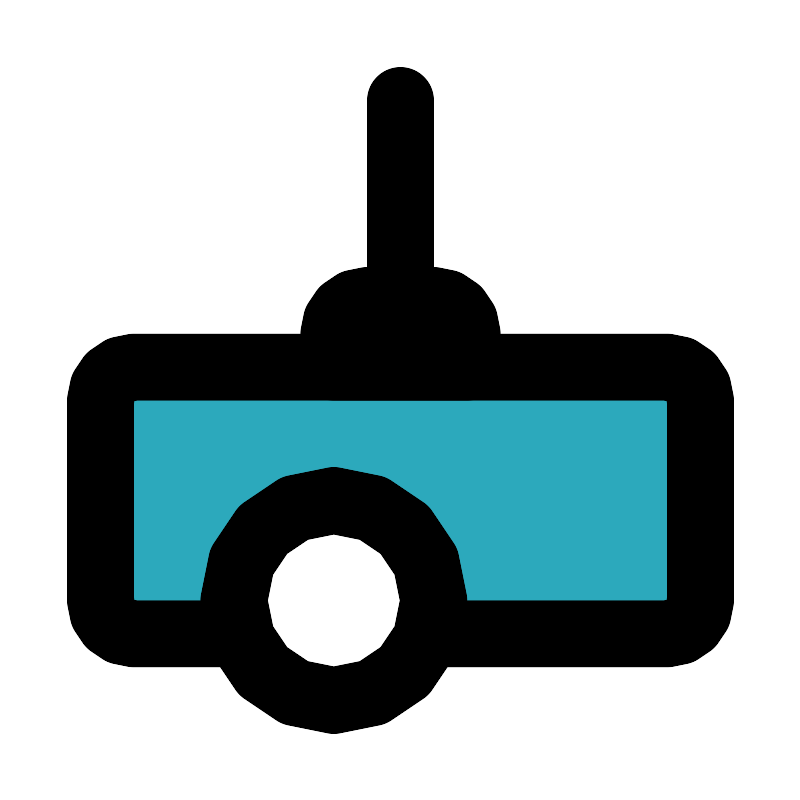 <svg fill="#000000" width="800px" height="800px" viewBox="0 0 24 24" id="cinema-projector-left" data-name="Flat Line" xmlns="http://www.w3.org/2000/svg" class="icon flat-line"><path id="secondary" d="M4,19H7.18a3,3,0,1,1,5.64,0H20a1,1,0,0,0,1-1V12a1,1,0,0,0-1-1H4a1,1,0,0,0-1,1v6A1,1,0,0,0,4,19Z" style="fill: rgb(44, 169, 188); stroke-width: 2;"></path><path id="primary" d="M13,19h7a1,1,0,0,0,1-1V12a1,1,0,0,0-1-1H4a1,1,0,0,0-1,1v6a1,1,0,0,0,1,1H7" style="fill: none; stroke: rgb(0, 0, 0); stroke-linecap: round; stroke-linejoin: round; stroke-width: 2;"></path><path id="primary-2" data-name="primary" d="M12,9V3m2,8H10V10a1,1,0,0,1,1-1h2a1,1,0,0,1,1,1ZM10,21a3,3,0,1,0-3-3A3,3,0,0,0,10,21Z" style="fill: none; stroke: rgb(0, 0, 0); stroke-linecap: round; stroke-linejoin: round; stroke-width: 2;"></path></svg>