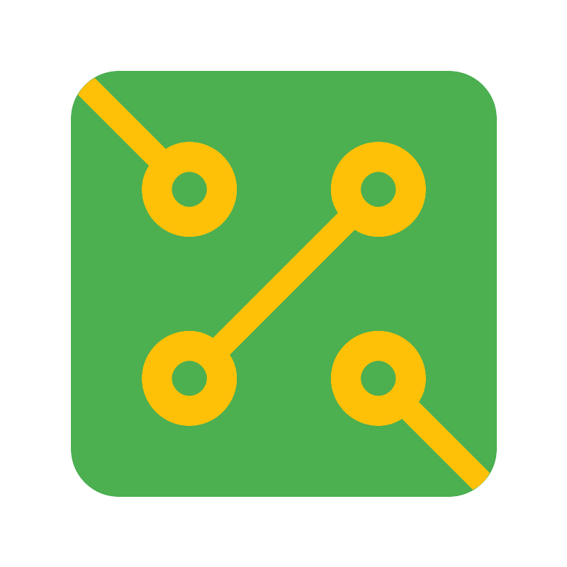 <svg width="800px" height="800px" viewBox="0 0 1024 1024" class="icon" version="1.1" xmlns="http://www.w3.org/2000/svg"><path d="M128 213.333333v597.333334c0 46.933333 38.4 85.333333 85.333333 85.333333h597.333334c46.933333 0 85.333333-38.4 85.333333-85.333333V213.333333c0-46.933333-38.4-85.333333-85.333333-85.333333H213.333333c-46.933333 0-85.333333 38.4-85.333333 85.333333z" fill="#4CAF50" /><path d="M140.8 170.666667l128 128c-8.533333 12.8-12.8 27.733333-12.8 42.666666 0 46.933333 38.4 85.333333 85.333333 85.333334s85.333333-38.4 85.333334-85.333334-38.4-85.333333-85.333334-85.333333c-14.933333 0-29.866667 4.266667-42.666666 12.8l-128-128c-12.8 6.4-23.466667 17.066667-29.866667 29.866667z m200.533333 138.666666c17.066667 0 32 14.933333 32 32s-14.933333 32-32 32-32-14.933333-32-32 14.933333-32 32-32zM883.2 853.333333l-128-128c8.533333-12.8 12.8-27.733333 12.8-42.666666 0-46.933333-38.4-85.333333-85.333333-85.333334s-85.333333 38.4-85.333334 85.333334 38.4 85.333333 85.333334 85.333333c14.933333 0 29.866667-4.266667 42.666666-12.8l128 128c12.8-6.4 23.466667-17.066667 29.866667-29.866667zM682.666667 714.666667c-17.066667 0-32-14.933333-32-32s14.933333-32 32-32 32 14.933333 32 32-14.933333 32-32 32zM341.333333 768c46.933333 0 85.333333-38.4 85.333334-85.333333 0-14.933333-4.266667-29.866667-12.8-42.666667L640 413.866667c12.8 8.533333 27.733333 12.8 42.666667 12.8 46.933333 0 85.333333-38.4 85.333333-85.333334s-38.4-85.333333-85.333333-85.333333-85.333333 38.4-85.333334 85.333333c0 14.933333 4.266667 29.866667 12.8 42.666667L384 610.133333c-12.8-8.533333-27.733333-12.8-42.666667-12.8-46.933333 0-85.333333 38.4-85.333333 85.333334s38.4 85.333333 85.333333 85.333333z m341.333334-458.666667c17.066667 0 32 14.933333 32 32s-14.933333 32-32 32-32-14.933333-32-32 14.933333-32 32-32z m-341.333334 341.333334c17.066667 0 32 14.933333 32 32s-14.933333 32-32 32-32-14.933333-32-32 14.933333-32 32-32z" fill="#FFC107" /></svg>