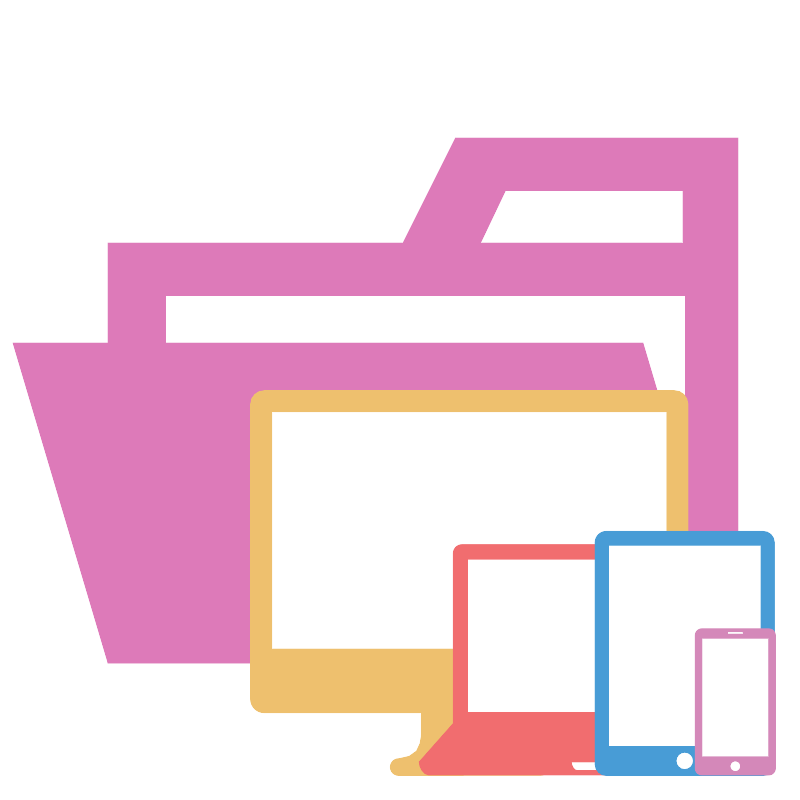 <svg width="800px" height="800px" viewBox="0 0 32 32" xmlns="http://www.w3.org/2000/svg"><title>folder_type_client_opened</title><path d="M27.4,5.5H18.2L16.1,9.7H4.3V26.5H29.5V5.5Zm0,18.7H6.6V11.8H27.4Zm0-14.5H19.2l1-2.1h7.1V9.7Z" style="fill:#dd7ab9"/><polygon points="25.7 13.7 0.5 13.7 4.3 26.5 29.5 26.5 25.7 13.7" style="fill:#dd7ab9"/><rect x="10.454" y="16.071" width="16.576" height="11.101" style="fill:#fff"/><path d="M26.944,15.6H10.557a.549.549,0,0,0-.557.54V27.951a.548.548,0,0,0,.557.54h6.275v.834s.02.749-.476.9c-.1.032-.429.1-.429.1a.338.338,0,1,0,0,.676h5.667a.338.338,0,1,0,0-.676,3.139,3.139,0,0,1-.469-.107.792.792,0,0,1-.421-.639c-.029-.274-.014-1.09-.014-1.09h6.255a.549.549,0,0,0,.557-.54V16.136A.55.55,0,0,0,26.944,15.6Zm-.292,10.34h-15.8V16.451h15.8Z" style="fill:#eec06e"/><rect x="18.54" y="22.132" width="10.688" height="8.848" style="fill:#fff"/><path d="M29.491,28.92V22.109a.351.351,0,0,0-.357-.346H18.464a.351.351,0,0,0-.356.346v6.806l-1.364,1.54c0,.22.172.527.383.527H30.472c.212,0,.384-.307.384-.527ZM24.535,30.8H23.064c-.126,0-.227-.217-.227-.327v-.012h1.922v.012C24.762,30.583,24.66,30.8,24.535,30.8Zm4.385-2.323H18.68V22.351H28.92Z" style="fill:#f16d6f"/><rect x="23.926" y="21.534" width="6.795" height="9.223" style="fill:#fff"/><path d="M30.5,21.231H24.239a.451.451,0,0,0-.458.444v8.886a.451.451,0,0,0,.458.443H30.5a.451.451,0,0,0,.458-.443V21.674A.451.451,0,0,0,30.5,21.231Zm-3.131,9.527a.343.343,0,1,1,.343-.343A.343.343,0,0,1,27.371,30.757Zm3.047-.919H24.323V21.793h6.095Z" style="fill:#489cd6"/><rect x="27.911" y="25.169" width="2.946" height="5.735" style="fill:#fff"/><path d="M30.726,25.127H28.059a.27.27,0,0,0-.274.266v5.325a.27.27,0,0,0,.274.266h2.667A.27.27,0,0,0,31,30.718V25.393A.27.27,0,0,0,30.726,25.127Zm-1.642.123H29.7v.091h-.617Zm.309,5.585a.206.206,0,1,1,.205-.206A.206.206,0,0,1,29.392,30.836Zm1.333-.586H28.06V25.513h2.665Z" style="fill:#d488b9"/></svg>