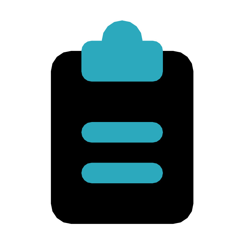 <svg fill="#000000" width="800px" height="800px" viewBox="0 0 24 24" id="clipboard-3" data-name="Flat Color" xmlns="http://www.w3.org/2000/svg" class="icon flat-color"><rect id="primary" x="5" y="5" width="14" height="17" rx="2" style="fill: rgb(0, 0, 0);"></rect><path id="secondary" d="M15,18H9a1,1,0,0,1,0-2h6a1,1,0,0,1,0,2Zm1-5a1,1,0,0,0-1-1H9a1,1,0,0,0,0,2h6A1,1,0,0,0,16,13ZM14,4a2,2,0,0,0-4,0H9A1,1,0,0,0,8,5V7A1,1,0,0,0,9,8h6a1,1,0,0,0,1-1V5a1,1,0,0,0-1-1Z" style="fill: rgb(44, 169, 188);"></path></svg>