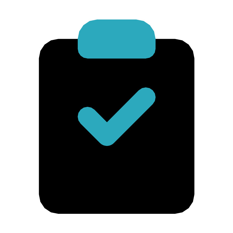 <svg fill="#000000" width="800px" height="800px" viewBox="0 0 24 24" id="clipboard-checklist" data-name="Flat Color" xmlns="http://www.w3.org/2000/svg" class="icon flat-color"><rect id="primary" x="4" y="4" width="16" height="18" rx="2" style="fill: rgb(0, 0, 0);"></rect><path id="secondary" d="M16,4V5a1,1,0,0,1-1,1H9A1,1,0,0,1,8,5V4a2,2,0,0,1,2-2h4A2,2,0,0,1,16,4ZM11.71,14.71l4-4a1,1,0,0,0-1.42-1.42L11,12.59l-1.29-1.3a1,1,0,0,0-1.42,1.42l2,2a1,1,0,0,0,1.42,0Z" style="fill: rgb(44, 169, 188);"></path></svg>