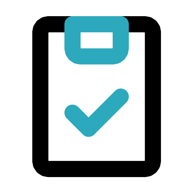 <svg fill="#000000" width="800px" height="800px" viewBox="0 0 24 24" id="clipboard-checklist-2" data-name="Line Color" xmlns="http://www.w3.org/2000/svg" class="icon line-color"><rect id="primary" x="5" y="3" width="14" height="18" rx="1" style="fill: none; stroke: rgb(0, 0, 0); stroke-linecap: round; stroke-linejoin: round; stroke-width: 2;"></rect><path id="secondary" d="M9,6a1,1,0,0,0,1,1h4a1,1,0,0,0,1-1V3H9Zm0,8,2,2,4-4" style="fill: none; stroke: rgb(44, 169, 188); stroke-linecap: round; stroke-linejoin: round; stroke-width: 2;"></path></svg>