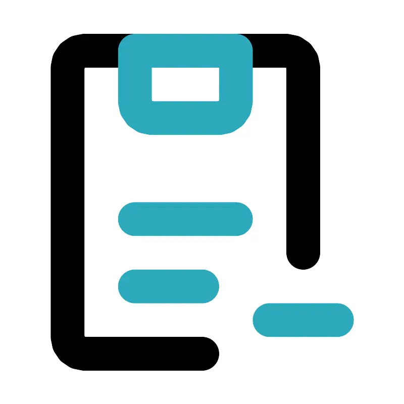 <svg fill="#000000" width="800px" height="800px" viewBox="0 0 24 24" id="clipboard-delete-2" data-name="Line Color" xmlns="http://www.w3.org/2000/svg" class="icon line-color"><path id="primary" d="M18,15V4a1,1,0,0,0-1-1H5A1,1,0,0,0,4,4V20a1,1,0,0,0,1,1h7" style="fill: none; stroke: rgb(0, 0, 0); stroke-linecap: round; stroke-linejoin: round; stroke-width: 2;"></path><path id="secondary" d="M8,3h6V6a1,1,0,0,1-1,1H9A1,1,0,0,1,8,6ZM8,17h4M8,13h6m2,6h4" style="fill: none; stroke: rgb(44, 169, 188); stroke-linecap: round; stroke-linejoin: round; stroke-width: 2;"></path></svg>