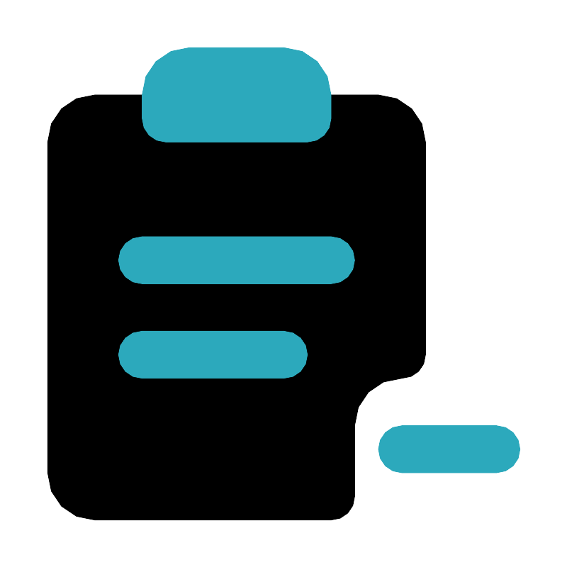<svg fill="#000000" width="800px" height="800px" viewBox="0 0 24 24" id="clipboard-delete" data-name="Flat Color" xmlns="http://www.w3.org/2000/svg" class="icon flat-color"><path id="primary" d="M18,15V6a2,2,0,0,0-2-2H4A2,2,0,0,0,2,6V20a2,2,0,0,0,2,2H14a1,1,0,0,0,1-1V18a2,2,0,0,1,2-2h0A1,1,0,0,0,18,15Z" style="fill: rgb(0, 0, 0);"></path><path id="secondary" d="M12,16H6a1,1,0,0,1,0-2h6a1,1,0,0,1,0,2Zm3-5a1,1,0,0,0-1-1H6a1,1,0,0,0,0,2h8A1,1,0,0,0,15,11ZM14,4V5a1,1,0,0,1-1,1H7A1,1,0,0,1,6,5V4A2,2,0,0,1,8,2h4A2,2,0,0,1,14,4Zm8,15a1,1,0,0,0-1-1H17a1,1,0,0,0,0,2h4A1,1,0,0,0,22,19Z" style="fill: rgb(44, 169, 188);"></path></svg>