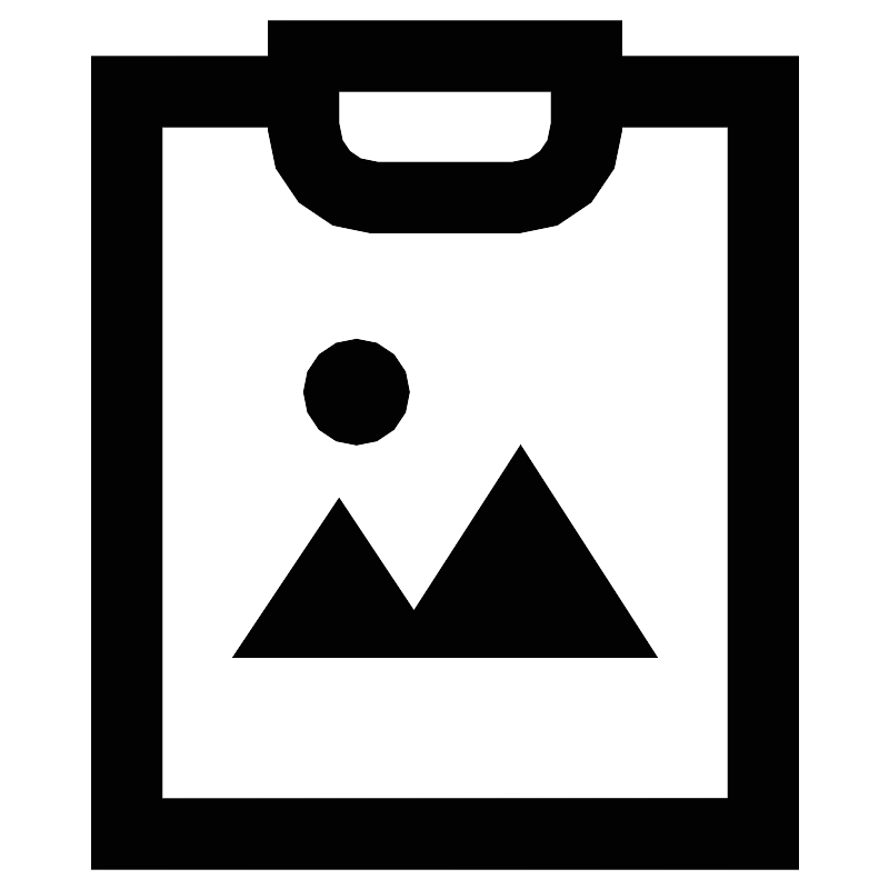 <svg width="800px" height="800px" viewBox="0 0 24 24" id="Layer_1" data-name="Layer 1" xmlns="http://www.w3.org/2000/svg"><defs><style>.cls-1{fill:#020202;}.cls-2{fill:none;stroke:#020202;stroke-miterlimit:10;stroke-width:1.91px;}</style></defs><polygon class="cls-1" points="17.73 17.73 10.36 17.73 11.16 16.47 14.04 12 17.73 17.73"/><polygon class="cls-1" points="11.16 16.47 10.36 17.73 6.27 17.73 9.14 13.43 11.16 16.47"/><circle class="cls-1" cx="9.61" cy="10.57" r="1.43"/><polyline class="cls-2" points="15.82 2.46 15.82 2.46 20.59 2.46 20.59 22.5 3.41 22.5 3.41 2.46 8.18 2.46 8.18 2.46"/><path class="cls-2" d="M15.82,1.5V3.41a1.92,1.92,0,0,1-1.91,1.91H10.09A1.92,1.92,0,0,1,8.18,3.41V1.5Z"/></svg>