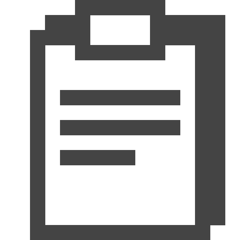 <path fill="#444" d="M11 1v-1h-6v1h-2v1h-1v14h12v-1h1v-14h-4zM6 1h4v2h-4v-2zM13 15h-10v-12h2v1h6v-1h2v12z"></path>