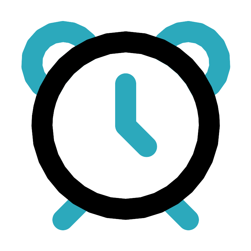 <svg fill="#000000" width="800px" height="800px" viewBox="0 0 24 24" id="clock-alt" data-name="Line Color" xmlns="http://www.w3.org/2000/svg" class="icon line-color"><polyline id="secondary" points="12 8 12 12 14 14" style="fill: none; stroke: rgb(44, 169, 188); stroke-linecap: round; stroke-linejoin: round; stroke-width: 2;"></polyline><path id="secondary-2" data-name="secondary" d="M6,3A3,3,0,0,0,4.71,8.7a8,8,0,0,1,4-4A3,3,0,0,0,6,3ZM18,3a3,3,0,0,0-2.7,1.71,8,8,0,0,1,4,4A3,3,0,0,0,18,3ZM8,19,6,21m10-2,2,2" style="fill: none; stroke: rgb(44, 169, 188); stroke-linecap: round; stroke-linejoin: round; stroke-width: 2;"></path><path id="primary" d="M20,12A8,8,0,0,1,4,12a7.91,7.91,0,0,1,.71-3.3,8,8,0,0,1,4-4,8,8,0,0,1,6.6,0,8,8,0,0,1,4,4A7.91,7.91,0,0,1,20,12Z" style="fill: none; stroke: rgb(0, 0, 0); stroke-linecap: round; stroke-linejoin: round; stroke-width: 2;"></path></svg>