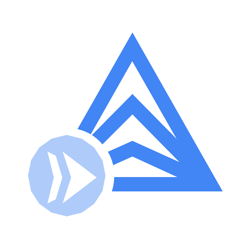 <svg width="800px" height="800px" viewBox="0 0 24 24" xmlns="http://www.w3.org/2000/svg"><path d="M6.42,13a3.92,3.92,0,0,0,0,7.83,3.92,3.92,0,0,0,0-7.83ZM6,17.09,5.37,19.2l-.83.42.62-2.53h0l-.62-2.52.83.42L6,17.09Zm0,2.53.83-2.53L6,14.57l3.32,2.52Z" style="fill:#aecbfa"/><path d="M12.75,3.13,7.47,12.42a4.61,4.61,0,0,1,1.26.5l4-7.06,4.32,7.57L12.75,9.06,8.86,13a4.37,4.37,0,0,1,1,.89L12.75,11l4.57,4.64-4.57-2.07L10.4,14.62a4.48,4.48,0,0,1,.5,1.27l1.85-.83,4.36,2H11a4.67,4.67,0,0,1-.22,1.36H21.43Z" style="fill:#4285f4"/></svg>