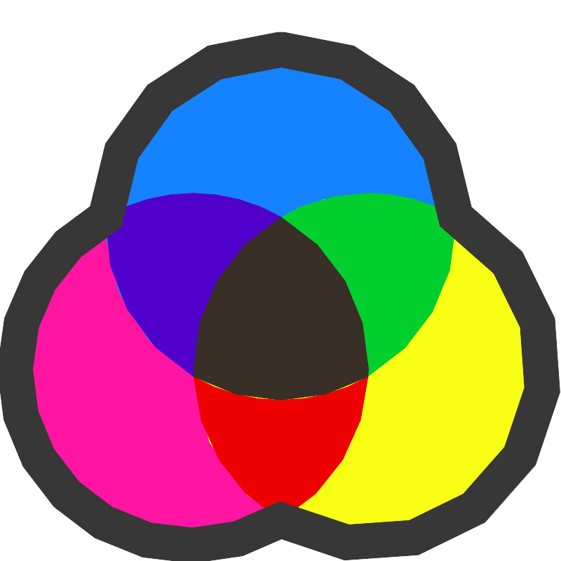 <svg width="800px" height="800px" viewBox="0 0 16 16" xmlns="http://www.w3.org/2000/svg"><path d="M10.5 10.5c.002 2.762-2.237 5-5 5s-5.002-2.238-5-5c-.002-2.76 2.237-5 5-5s5.002 2.24 5 5z" color="#000000" fill="#ff15a1" stroke="#373737" stroke-width=".49999682600000006"/><path d="M8 1.401a4.998 4.998 0 0 0-2.488 9.334c-.004-.078-.012-.155-.012-.234a4.998 4.998 0 0 1 7.488-4.334A4.994 4.994 0 0 0 8 1.4z" fill="#1583ff"/><path d="M10.5 5.5a4.998 4.998 0 0 0-5 5c0 .08.008.157.012.235A4.998 4.998 0 0 0 13 6.401c0-.079-.008-.156-.012-.234A4.975 4.975 0 0 0 10.5 5.5z" fill="#00cf2d"/><path d="M12.988 6.167c.004.078.012.155.012.234a4.998 4.998 0 0 1-7.489 4.334 4.994 4.994 0 0 0 4.989 4.766 4.998 4.998 0 0 0 2.488-9.334z" fill="#f8ff15"/><path d="M5.512 10.735a4.996 4.996 0 0 0 2.486 4.093 4.987 4.987 0 0 0 2.49-4.091A4.978 4.978 0 0 1 8 11.4a4.975 4.975 0 0 1-2.488-.666z" fill="#ef0000"/><path d="M7.998 6.173A4.991 4.991 0 0 0 5.5 10.5c0 .079.008.156.012.234a4.978 4.978 0 0 0 4.977.002c.003-.079.011-.157.011-.236a4.99 4.99 0 0 0-2.502-4.328z" fill="#383027"/><path d="M5.5 5.5c-.91 0-1.76.247-2.494.67a4.99 4.99 0 0 0 2.506 4.564c-.004-.077-.012-.154-.012-.233a4.991 4.991 0 0 1 2.498-4.328A4.975 4.975 0 0 0 5.5 5.5z" fill="#5100cc"/><path d="M8 1.401a4.998 4.998 0 0 0-4.994 4.77 4.998 4.998 0 1 0 4.992 8.658 4.998 4.998 0 1 0 4.99-8.662A4.994 4.994 0 0 0 8 1.4z" fill="none" stroke="#373737" stroke-width=".9999936520000001"/></svg>