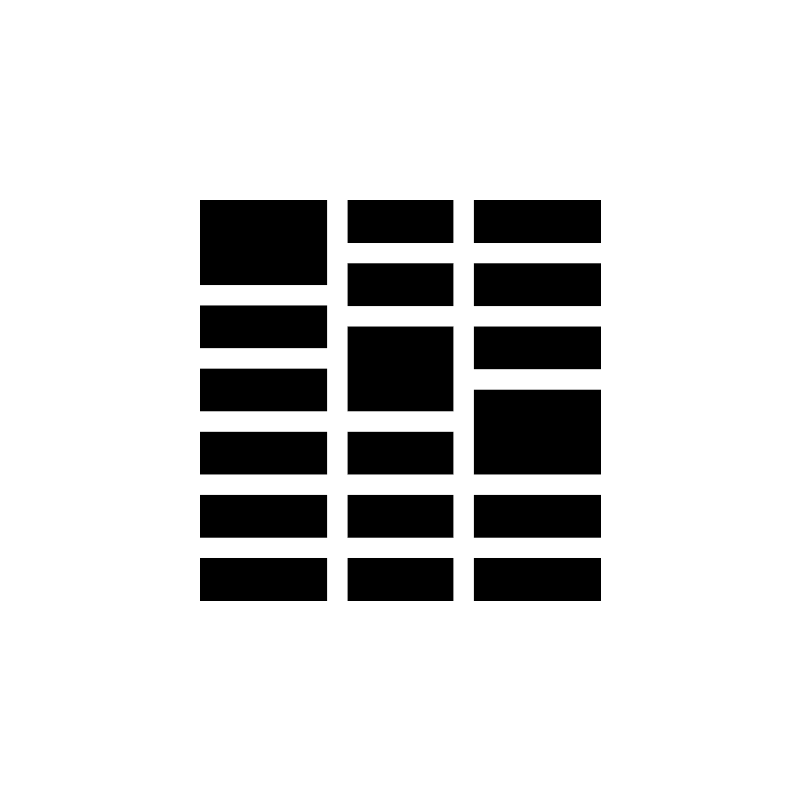 <path fill="#000000" fill-opacity="1" stroke-width="0.2" stroke-linejoin="round" d="M 19,19L 31,19L 31,27L 19,27L 19,19 Z M 33,19L 43,19L 43,23L 33,23L 33,19 Z M 57,19L 57,23L 45,23L 45,19L 57,19 Z M 19,29L 31,29L 31,33L 19,33L 19,29 Z M 33,25L 43,25L 43,29L 33,29L 33,25 Z M 57,25L 57,29L 45,29L 45,25L 57,25 Z M 19,35L 31,35L 31,39L 19,39L 19,35 Z M 33,31L 43,31L 43,39L 33,39L 33,31 Z M 57,31L 57,35L 45,35L 45,31L 57,31 Z M 19,41L 31,41L 31,45L 19,45L 19,41 Z M 33,41L 43,41L 43,45L 33,45L 33,41 Z M 57,37L 57,45L 45,45L 45,37L 57,37 Z M 19,47L 31,47L 31,51L 19,51L 19,47 Z M 33,47L 43,47L 43,51L 33,51L 33,47 Z M 57,47L 57,51L 45,51L 45,47L 57,47 Z M 19,53L 31,53L 31,57L 19,57L 19,53 Z M 33,53L 43,53L 43,57L 33,57L 33,53 Z M 57,53L 57,57L 45,57L 45,53L 57,53 Z "/>