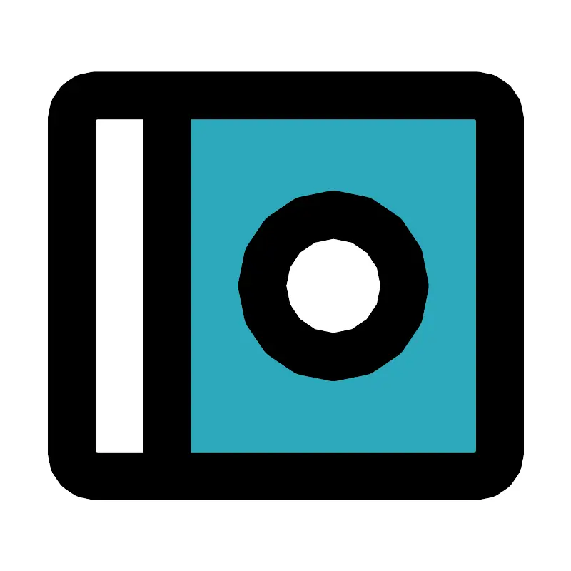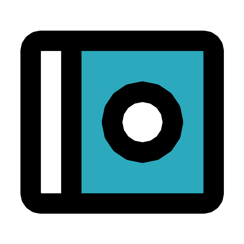 <svg fill="#000000" width="800px" height="800px" viewBox="0 0 24 24" id="compact-disk" data-name="Flat Line" xmlns="http://www.w3.org/2000/svg" class="icon flat-line"><path id="secondary" d="M20,4H7V20H20a1,1,0,0,0,1-1V5A1,1,0,0,0,20,4ZM14,15a3,3,0,1,1,3-3A3,3,0,0,1,14,15Z" style="fill: rgb(44, 169, 188); stroke-width: 2;"></path><path id="primary" d="M17,12a3,3,0,1,1-3-3A3,3,0,0,1,17,12Zm4,7V5a1,1,0,0,0-1-1H4A1,1,0,0,0,3,5V19a1,1,0,0,0,1,1H20A1,1,0,0,0,21,19ZM7,20V4" style="fill: none; stroke: rgb(0, 0, 0); stroke-linecap: round; stroke-linejoin: round; stroke-width: 2;"></path></svg>