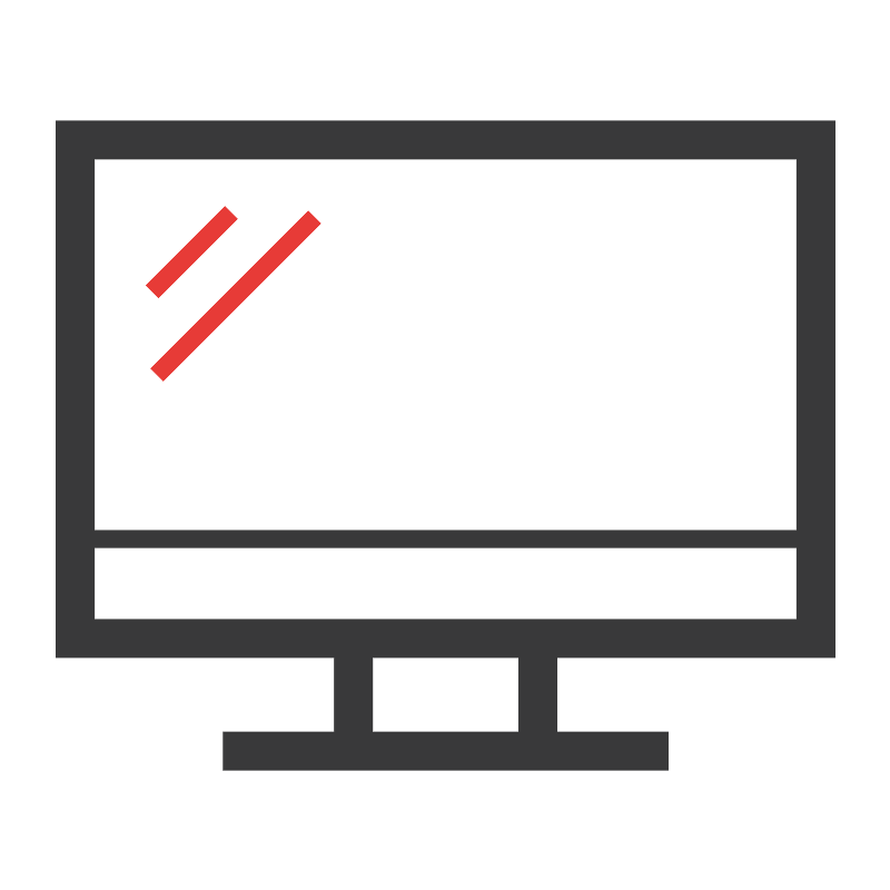 <svg width="800px" height="800px" viewBox="0 0 1024 1024" class="icon" version="1.1" xmlns="http://www.w3.org/2000/svg"><path d="M511.3 676.9m-10 0a10 10 0 1 0 20 0 10 10 0 1 0-20 0Z" fill="#E73B37" /><path d="M960 756V138.5H64V756h320.1v85.5H256.2v44h511.9v-44h-128V756H960zM108 182.5h808v427.1H108V182.5z m488.1 659h-168V756h168v85.5zM108 712v-82.5h808V712H108z" fill="#39393A" /><path d="M167.536 327.703l90.72-90.721 14.143 14.142-90.721 90.72zM172.959 423.469l181.159-181.16 14.142 14.143L187.1 437.61z" fill="#E73B37" /></svg>