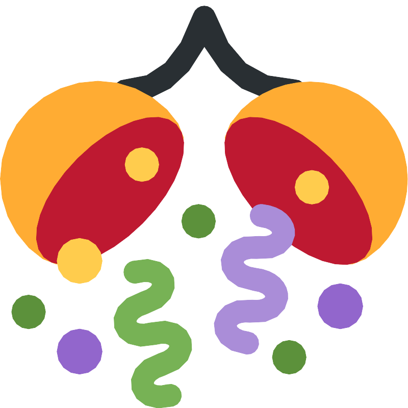 <svg width="800px" height="800px" viewBox="0 0 36 36" xmlns="http://www.w3.org/2000/svg" xmlns:xlink="http://www.w3.org/1999/xlink" aria-hidden="true" role="img" class="iconify iconify--twemoji" preserveAspectRatio="xMidYMid meet"><path fill="#292F33" d="M26 9c-3.591 0-6.27-1.648-7.989-4.905C16.385 7.314 13.993 9 11 9a1 1 0 0 1 0-2c2.729 0 4.765-1.957 6.051-5.816a1 1 0 0 1 1.898 0C20.271 5.151 22.512 7 26 7a1 1 0 1 1 0 2z"></path><path fill="#FFAC33" d="M14.711 9.654c3.364 3.366.498 5.954-2.868 9.319c-3.365 3.365-5.954 6.232-9.319 2.868a8.616 8.616 0 0 1 0-12.187a8.616 8.616 0 0 1 12.187 0z"></path><path fill="#BE1931" d="M15.542 10.972c1.584 1.585.248 5.486-2.983 8.717c-3.231 3.231-7.132 4.568-8.717 2.982c-1.584-1.584-.248-5.486 2.982-8.717c3.232-3.23 7.134-4.566 8.718-2.982z"></path><path fill="#FFAC33" d="M21.289 9.654c-3.363 3.366-.498 5.954 2.868 9.319c3.365 3.365 5.954 6.232 9.319 2.868A8.618 8.618 0 0 0 21.289 9.654z"></path><path fill="#BE1931" d="M20.459 10.972c-1.585 1.585-.249 5.486 2.982 8.717c3.23 3.231 7.133 4.568 8.717 2.982c1.584-1.584.248-5.486-2.983-8.717c-3.23-3.23-7.133-4.566-8.716-2.982z"></path><path fill="#AA8DD8" d="M22.41 18.221a1 1 0 0 1 .734-.215c.867.094 1.598.396 2.109.873c.541.505.807 1.183.734 1.862c-.129 1.191-1.324 2.285-3.363 2.065c-.793-.085-1.146.17-1.158.291c-.014.121.277.446 1.07.532c.867.094 1.598.396 2.109.873c.541.505.809 1.183.734 1.862c-.129 1.192-1.324 2.285-3.361 2.066c-.578-.062-.883.057-1.012.134c-.103.063-.144.124-.148.158c-.012.12.275.445 1.07.531a1 1 0 0 1-.215 1.989c-2.037-.219-2.973-1.542-2.844-2.735c.129-1.192 1.324-2.285 3.363-2.065c.578.063.881-.057 1.01-.134c.104-.062.145-.123.148-.157c.014-.121-.275-.446-1.07-.532c-2.037-.22-2.973-1.542-2.844-2.735c.129-1.192 1.324-2.286 3.361-2.064c.578.062.883-.058 1.012-.135c.103-.062.144-.123.148-.157c.012-.121-.277-.446-1.07-.532a1 1 0 0 1-.517-1.775z"></path><path fill="#77B255" d="M15.266 35.828c-1.973.557-3.334-.322-3.658-1.477c-.324-1.154.378-2.615 2.35-3.17c.77-.216 1.001-.584.97-.701c-.034-.119-.425-.312-1.193-.096c-1.972.556-3.333-.324-3.657-1.479c-.326-1.155.378-2.614 2.351-3.169c.769-.217 1.001-.586.967-.703c-.033-.116-.423-.311-1.192-.095a1 1 0 1 1-.54-1.924c1.971-.555 3.333.322 3.659 1.479c.324 1.154-.379 2.613-2.352 3.17c-.77.216-1.001.584-.967.701c.032.117.422.312 1.19.096c1.974-.556 3.334.322 3.659 1.479c.325 1.153-.378 2.612-2.352 3.169c-.768.215-.999.586-.967.701c.034.118.423.312 1.192.097a.998.998 0 1 1 .54 1.922z"></path><circle fill="#5C913B" cx="2.5" cy="27.5" r="1.5"></circle><circle fill="#9266CC" cx="7" cy="31" r="2"></circle><circle fill="#9266CC" cx="30" cy="27" r="2"></circle><circle fill="#5C913B" cx="25.5" cy="31.5" r="1.5"></circle><circle fill="#5C913B" cx="17.5" cy="19.5" r="1.5"></circle><circle fill="#FFCC4D" cx="7" cy="23" r="2"></circle><circle fill="#FFCC4D" cx="27.5" cy="16.5" r="1.5"></circle><circle fill="#FFCC4D" cx="12.5" cy="14.5" r="1.5"></circle></svg>