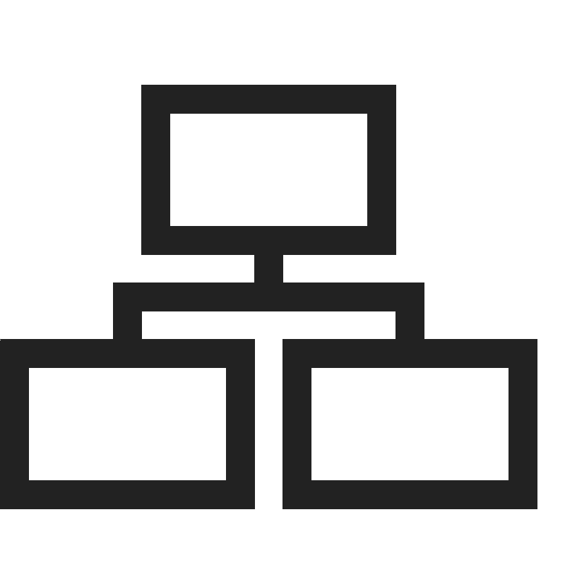 <path d="M 5 3 L 5 9 L 9 9 L 9 10 L 4 10 L 4 12 L 0 12 L 0 18 L 9 18 L 9 12 L 5 12 L 5 11 L 14 11 L 14 12 L 10 12 L 10 18 L 19 18 L 19 12 L 15 12 L 15 10 L 10 10 L 10 9 L 14 9 L 14 3 L 5 3 z M 6 4 L 13 4 L 13 8 L 6 8 L 6 4 z M 1 13 L 8 13 L 8 17 L 1 17 L 1 13 z M 11 13 L 18 13 L 18 17 L 11 17 L 11 13 z " style="fill:#222222; fill-opacity:1; stroke:none; stroke-width:0px;"/>