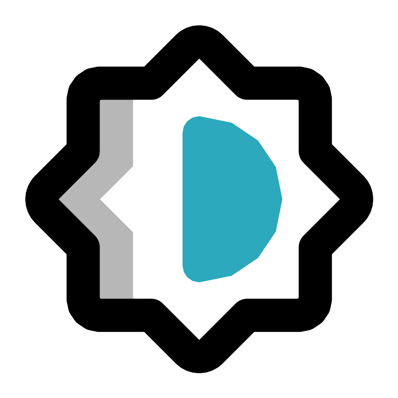 <svg width="800px" height="800px" viewBox="0 0 24 24" id="contrass" xmlns="http://www.w3.org/2000/svg" class="icon multi-color"><path id="tertiary-fill" d="M8,10,6,12l2,2v5H6a1,1,0,0,1-1-1V14.9L2.8,12.71a1,1,0,0,1,0-1.42L5,9.1V6A1,1,0,0,1,6,5H8Z" style="fill: #b7b7b7; stroke-width: 2;"></path><path id="primary-stroke" d="M21.19,11.29,19,9.1V6a1,1,0,0,0-1-1H14.9L12.71,2.81a1,1,0,0,0-1.42,0L9.1,5H6A1,1,0,0,0,5,6V9.1L2.81,11.29a1,1,0,0,0,0,1.42L5,14.9V18a1,1,0,0,0,1,1H9.1l2.19,2.19a1,1,0,0,0,1.42,0L14.9,19H18a1,1,0,0,0,1-1V14.9l2.19-2.19A1,1,0,0,0,21.19,11.29Z" style="fill: none; stroke: rgb(0, 0, 0); stroke-linecap: round; stroke-linejoin: round; stroke-width: 2;"></path><path id="secondary-fill" d="M12,7a1,1,0,0,0-1,1v8a1,1,0,0,0,1,1A5,5,0,0,0,12,7Z" style="fill: rgb(44, 169, 188); stroke-width: 2;"></path></svg>