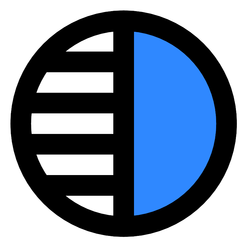 <path d="M24 4C35.0457 4 44 12.9543 44 24C44 35.0457 35.0457 44 24 44V4Z" fill="#2F88FF" stroke="#000000" stroke-width="4" stroke-linejoin="round"/>
