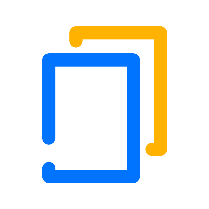 <svg width="800px" height="800px" viewBox="0 0 64 64" data-name="Layer 1" id="Layer_1" xmlns="http://www.w3.org/2000/svg"><defs><style>.cls-1{fill:#0074ff;}.cls-2{fill:#ffb300;}</style></defs><title/><path class="cls-1" d="M40.79,56H14.9a2,2,0,0,1-2-2V51.57a2,2,0,1,1,4,0V52H38.79V20.31H16.9V42.25a2,2,0,1,1-4,0V18.31a2,2,0,0,1,2-2H40.79a2,2,0,0,1,2,2V54A2,2,0,0,1,40.79,56Z"/><path class="cls-2" d="M49.1,47.69H46.5a2,2,0,0,1,0-4h.6V12H25.21v.5a2,2,0,0,1-4,0V10a2,2,0,0,1,2-2H49.1a2,2,0,0,1,2,2V45.69A2,2,0,0,1,49.1,47.69Z"/></svg>