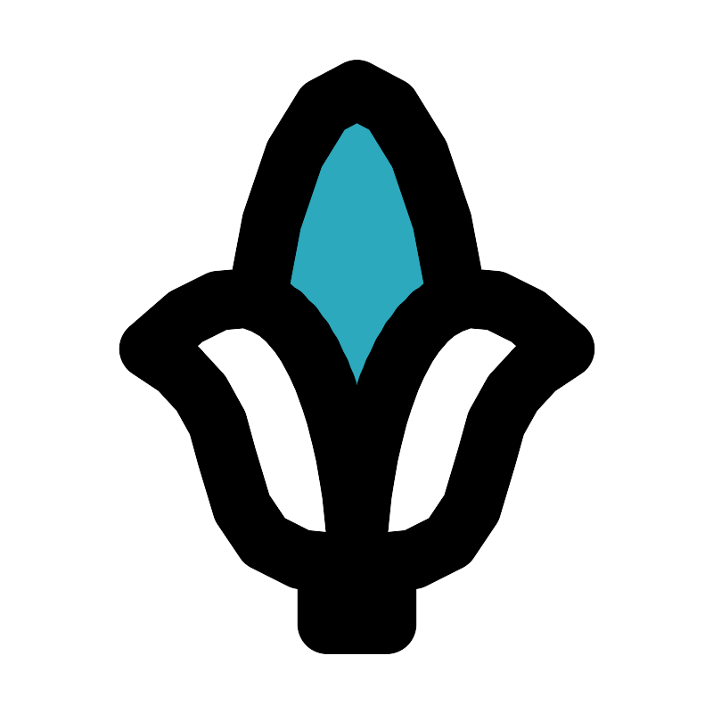<svg fill="#000000" width="800px" height="800px" viewBox="0 0 24 24" id="corn-2" data-name="Flat Line" xmlns="http://www.w3.org/2000/svg" class="icon flat-line"><path id="secondary" d="M12,19h0c0-2.78.91-8.14,3.37-8.9C14.91,6.45,13.57,3,12,3S9.09,6.45,8.63,10.09C11.09,10.85,12,16.21,12,19Z" style="fill: rgb(44, 169, 188); stroke-width: 2;"></path><path id="primary" d="M8.63,10.09C9.09,6.45,10.43,3,12,3s2.91,3.45,3.37,7.09C12.91,10.85,12,16.21,12,19h0C12,16.21,11.09,10.85,8.63,10.09Zm7.74,5.27A4.89,4.89,0,0,1,19,11.73c-5.25-5.46-7,3.41-7,7.27C15.07,19,15.75,18.09,16.37,15.36Zm-8.75,0A4.86,4.86,0,0,0,5,11.73c5.25-5.46,7,3.41,7,7.27C8.93,19,8.25,18.09,7.62,15.36ZM13,19v2H11V19c.3,0,.63,0,1,0S12.7,19,13,19Z" style="fill: none; stroke: rgb(0, 0, 0); stroke-linecap: round; stroke-linejoin: round; stroke-width: 2;"></path></svg>