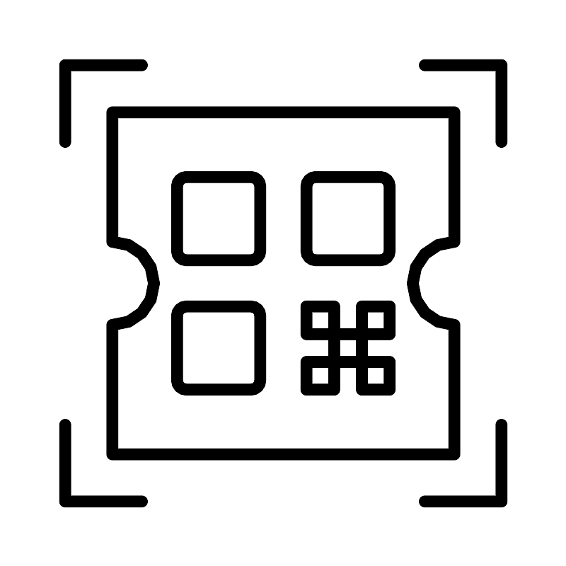 <svg width="800px" height="800px" viewBox="0 0 48 48" xmlns="http://www.w3.org/2000/svg"><defs><style>.a{fill:none;stroke:#000000;stroke-linecap:round;stroke-linejoin:round;}</style></defs><path class="a" d="M38.5,20.473V9.5H9.5V20.473a3.527,3.527,0,0,1,0,7.054V38.5h29V27.527a3.527,3.527,0,0,1,0-7.054Z"/><rect class="a" x="14.9865" y="14.9865" width="7.0541" height="7.0541" rx="0.7838"/><rect class="a" x="14.9865" y="25.9595" width="7.0541" height="7.0541" rx="0.7838"/><rect class="a" x="25.9595" y="14.9865" width="7.0541" height="7.0541" rx="0.7838"/><rect class="a" x="28.3108" y="28.3108" width="2.3514" height="2.3514"/><rect class="a" x="30.6622" y="25.9595" width="2.3514" height="2.3514"/><rect class="a" x="30.6622" y="30.6622" width="2.3514" height="2.3514"/><rect class="a" x="25.9595" y="25.9595" width="2.3514" height="2.3514"/><rect class="a" x="25.9595" y="30.6622" width="2.3514" height="2.3514"/><path class="a" d="M12,5.5H5.5V12"/><path class="a" d="M42.5,12V5.5H36"/><path class="a" d="M36,42.5h6.5V36"/><path class="a" d="M5.5,36v6.5H12"/></svg>