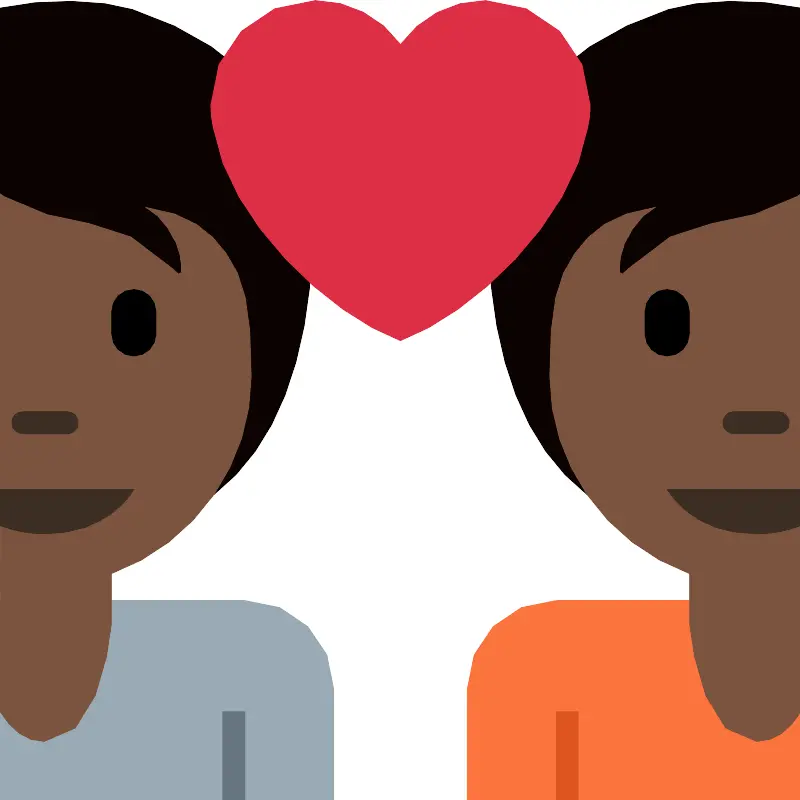 Пара с сердцем и темной кожей (Couple with heart dark skin tone)