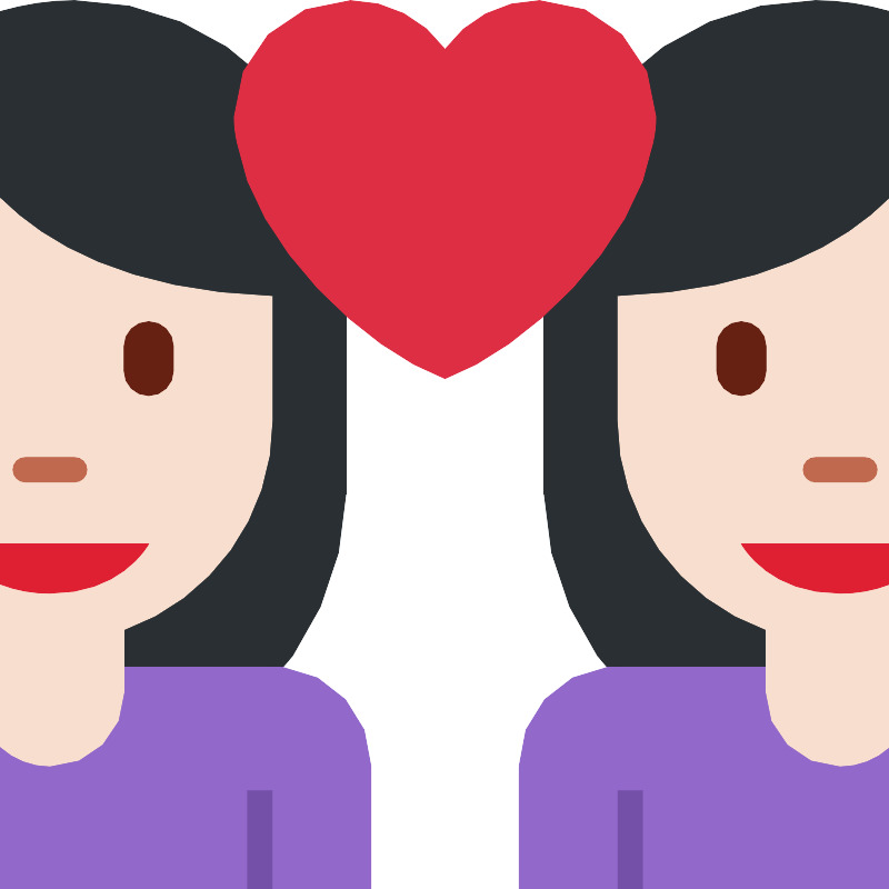 Пара с сердцем женщина-женщина светлый оттенок кожи