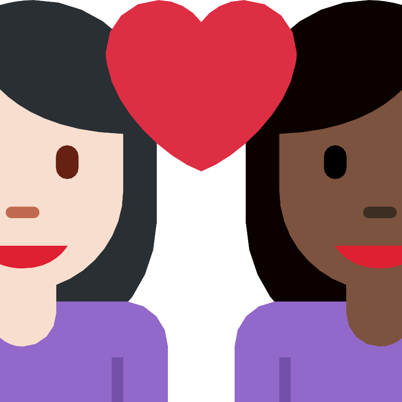 Пара с сердцем женщина-женщина светлый и темный оттенки кожи