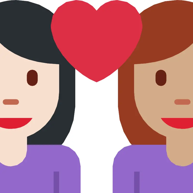 Пара с сердцем женщина-женщина светлый и средний оттенки кожи