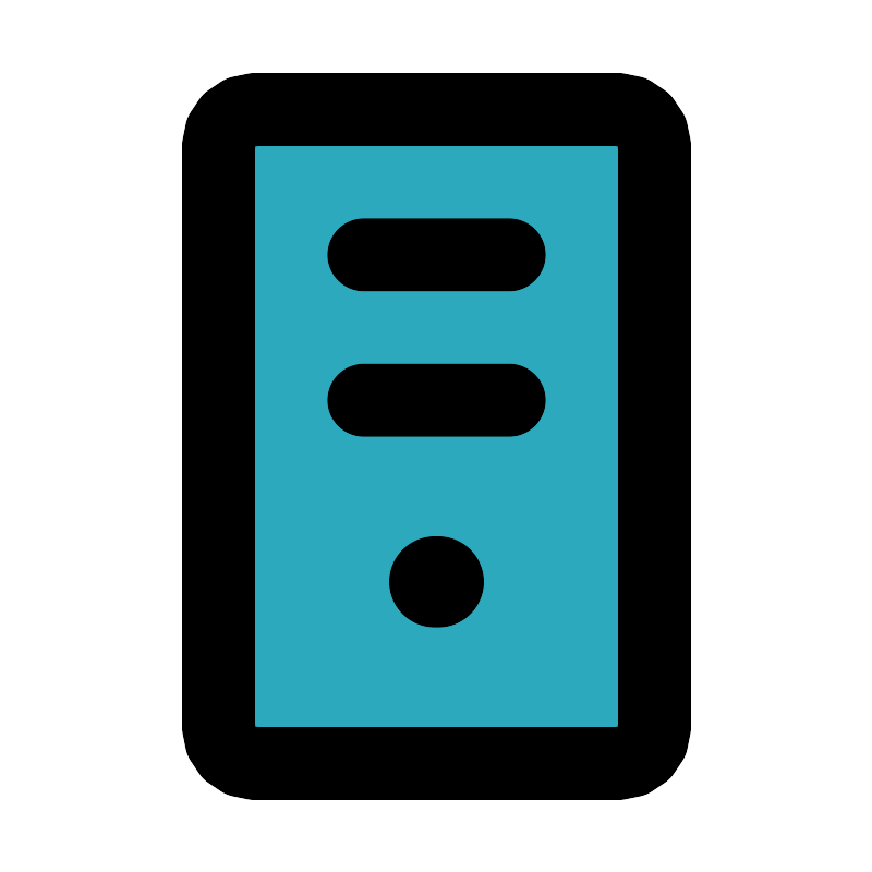 <svg fill="#000000" width="800px" height="800px" viewBox="0 0 24 24" id="cpu" data-name="Flat Line" xmlns="http://www.w3.org/2000/svg" class="icon flat-line"><rect id="secondary" x="6" y="3" width="12" height="18" rx="1" style="fill: rgb(44, 169, 188); stroke-width: 2;"></rect><line id="primary-upstroke" x1="11.95" y1="16" x2="12.05" y2="16" style="fill: none; stroke: rgb(0, 0, 0); stroke-linecap: round; stroke-linejoin: round; stroke-width: 2.5;"></line><path id="primary" d="M14,7H10m4,4H10m8,9V4a1,1,0,0,0-1-1H7A1,1,0,0,0,6,4V20a1,1,0,0,0,1,1H17A1,1,0,0,0,18,20Z" style="fill: none; stroke: rgb(0, 0, 0); stroke-linecap: round; stroke-linejoin: round; stroke-width: 2;"></path></svg>