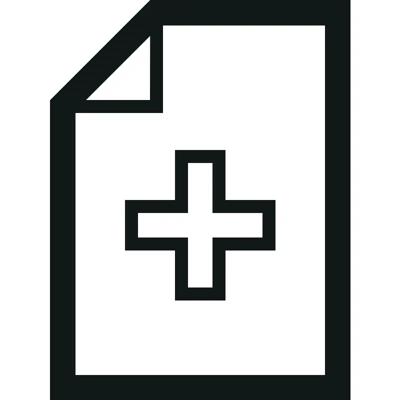 <path class="blueprint_een" d="M12,0L4,8v24h24V0H12z M12,8H6.828l5.176-5.176L12,8z M26,30H6V9h7V2h13V30z M10,16v4h4v4h4v-4
