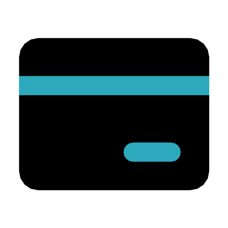<svg fill="#000000" width="800px" height="800px" viewBox="0 0 24 24" id="credit-card-2" data-name="Flat Color" xmlns="http://www.w3.org/2000/svg" class="icon flat-color"><rect id="primary" x="2" y="4" width="20" height="16" rx="2" style="fill: rgb(0, 0, 0);"></rect><path id="secondary" d="M22,10H2V8H22Zm-4,5H14a1,1,0,0,0,0,2h4a1,1,0,0,0,0-2Z" style="fill: rgb(44, 169, 188);"></path></svg>