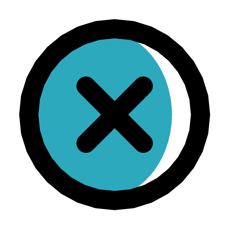 <svg fill="#000000" width="800px" height="800px" viewBox="0 0 24 24" id="cross-circle" xmlns="http://www.w3.org/2000/svg" class="icon multi-color"><ellipse id="secondary-fill" cx="10.5" cy="12" rx="7.5" ry="8.88" style="fill: rgb(44, 169, 188); stroke-width: 2;"></ellipse><path id="primary-stroke" d="M21,12a9,9,0,1,1-9-9A9,9,0,0,1,21,12Zm-6,3L9,9m0,6,6-6" style="fill: none; stroke: rgb(0, 0, 0); stroke-linecap: round; stroke-linejoin: round; stroke-width: 2;"></path></svg>