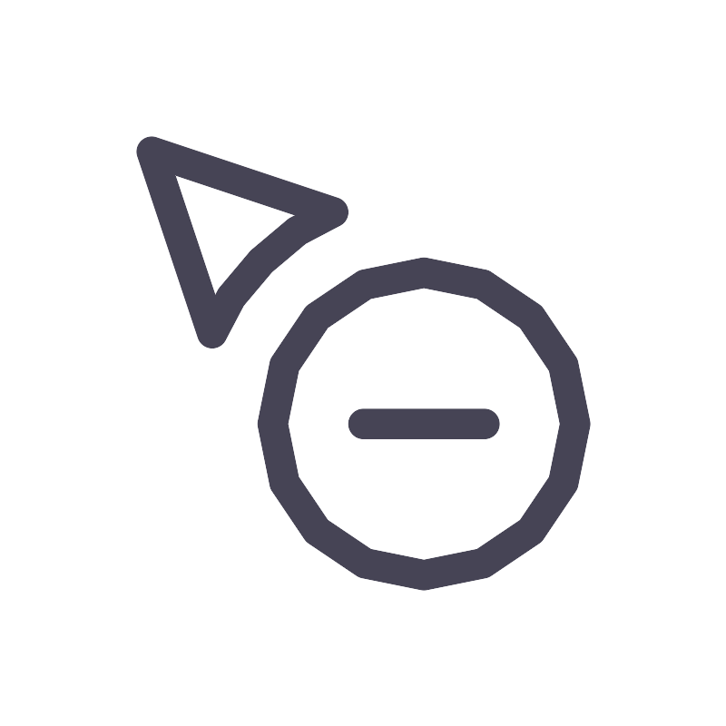 <path d="M16 14H12M19 14C19 16.7614 16.7614 19 14 19C11.2386 19 9 16.7614 9 14C9 11.2386 11.2386 9 14 9C16.7614 9 19 11.2386 19 14ZM7 11C7.5 9.5 9.5 7.5 11 7L5 5L7 11Z" stroke="#464455" stroke-linecap="round" stroke-linejoin="round"/>