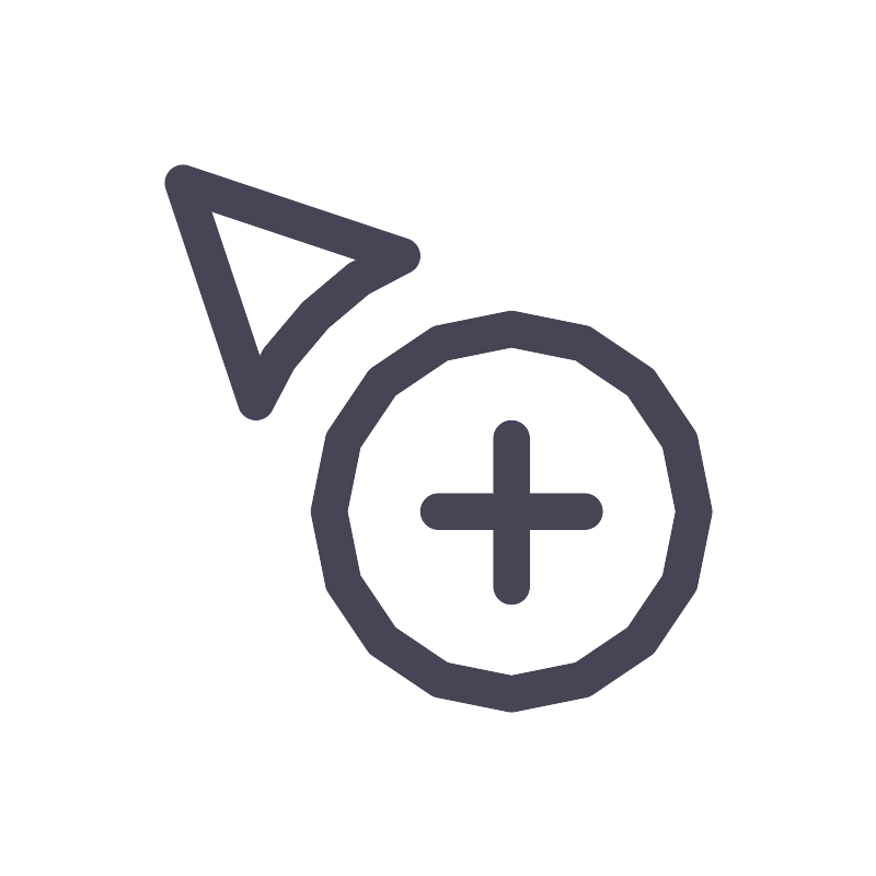 <svg width="800px" height="800px" viewBox="0 0 24 24" fill="none" xmlns="http://www.w3.org/2000/svg"><path d="M14 12V16.0524M16 14H12M19 14C19 16.7614 16.7614 19 14 19C11.2386 19 9 16.7614 9 14C9 11.2386 11.2386 9 14 9C16.7614 9 19 11.2386 19 14ZM7 11C7.5 9.5 9.5 7.5 11 7L5 5L7 11Z" stroke="#464455" stroke-linecap="round" stroke-linejoin="round"/></svg>